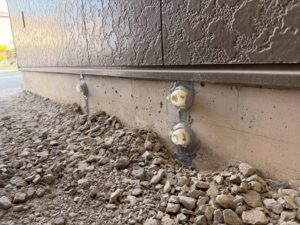 基礎の内側・外側から、エポキシ樹脂を注入ドーム工法にて圧入補修。