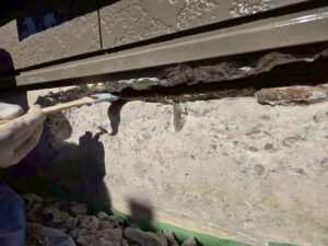 露出した鉄筋に対し、錆の進行を防ぐため錆止め剤を2回塗布し、耐久性を確保しておきます。