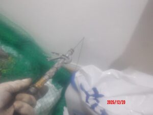 そのため、上部から穴あけを行い、壁内部へ直接薬剤を注入しました。