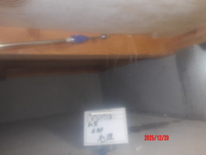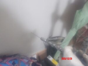 そのため、上部から穴あけを行い、壁内部へ直接薬剤を注入しました。
