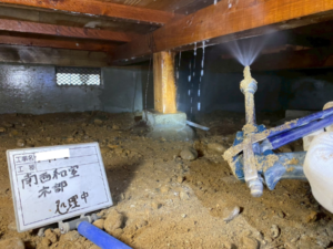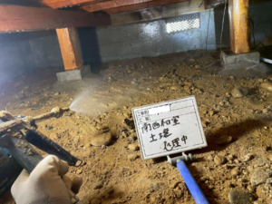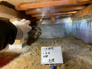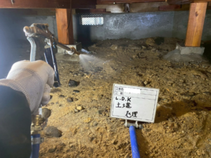 その後、床下全面にも薬剤を散布し、建物全体をしっかりとカバーしています。