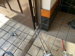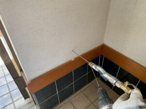 さらに、シロアリ被害のリスクが高い玄関まわりについては、壁内への薬剤注入と玄関枠への注入処理も行いました。