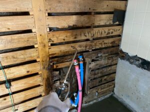 浴室の解体を進める中で、普段は確認できない木部や土壌が露出した状態となりました。