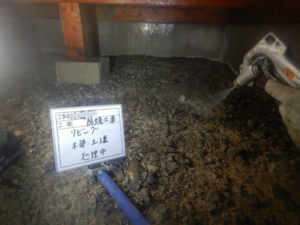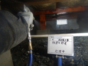 その場でシロアリ駆除のご依頼をいただき、被害箇所の処理に加え、「せっかくなので床下全体も予防しておきたい」とのご要望から、床下全体への薬剤散布もあわせて実施することとなりました。